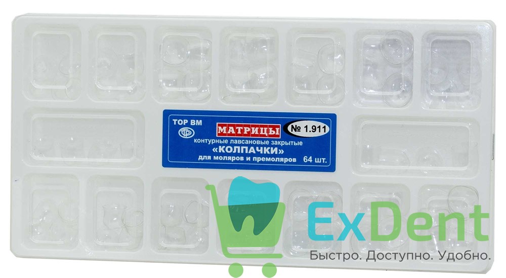 Матрицы лавсановые контурные колпачки для моляров и премоляров (64 шт)