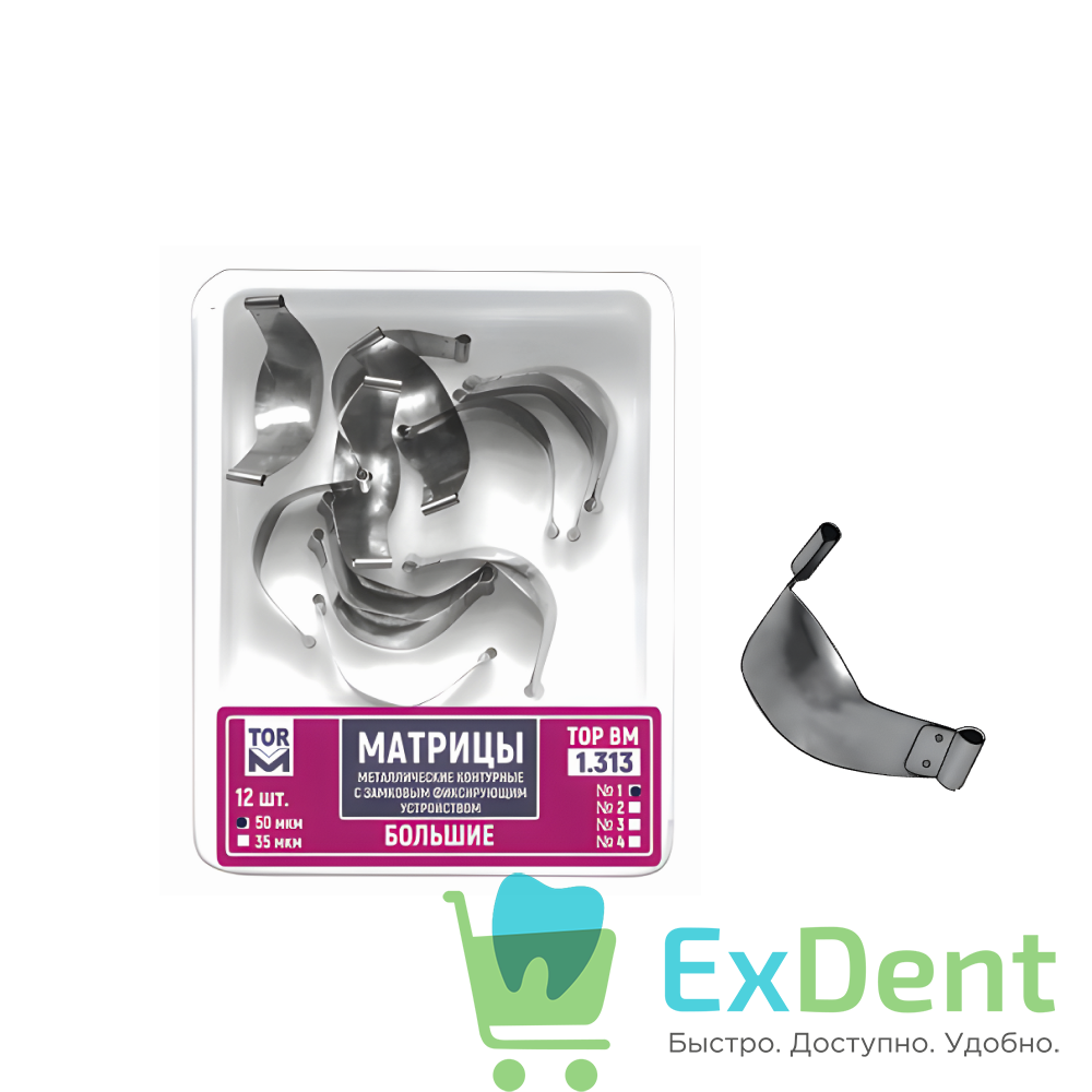 Матрицы металлические контурные с замковым фиксирующим устройством ТОР ВМ (большие, форма №1, 50 мкм, 12 шт.) — это профессиональный выбор для стоматологов, стремящихся к идеальному результату при реставрации моляров. Инновационная конструкция, качественные материалы и продуманная эргономика делают этот набор незаменимым инструментом для создания долговечных и эстетичных пломб.