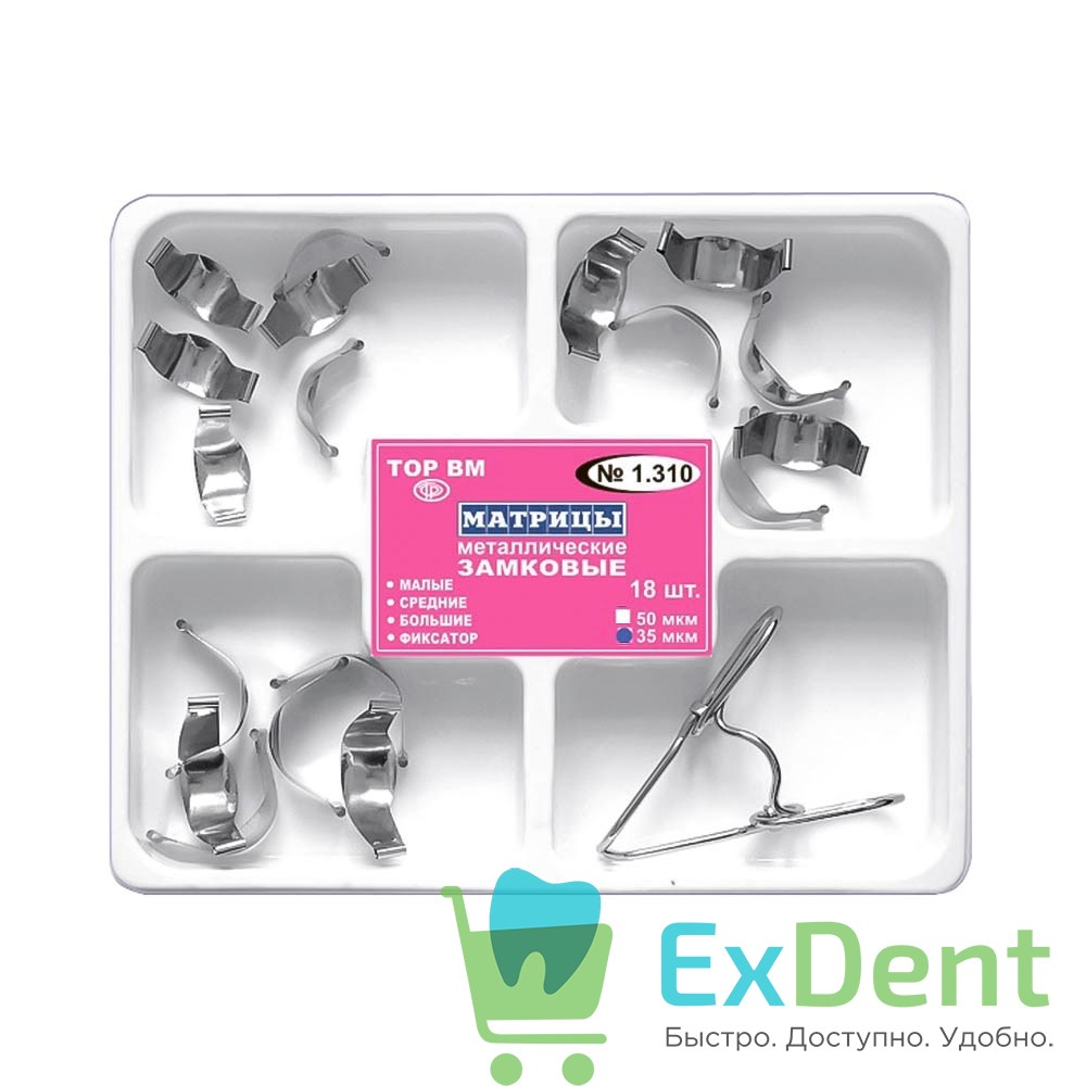 Матрицы металлические контурные замковые, набор 3 вида + фиксатор (35 мкм х 18 шт)