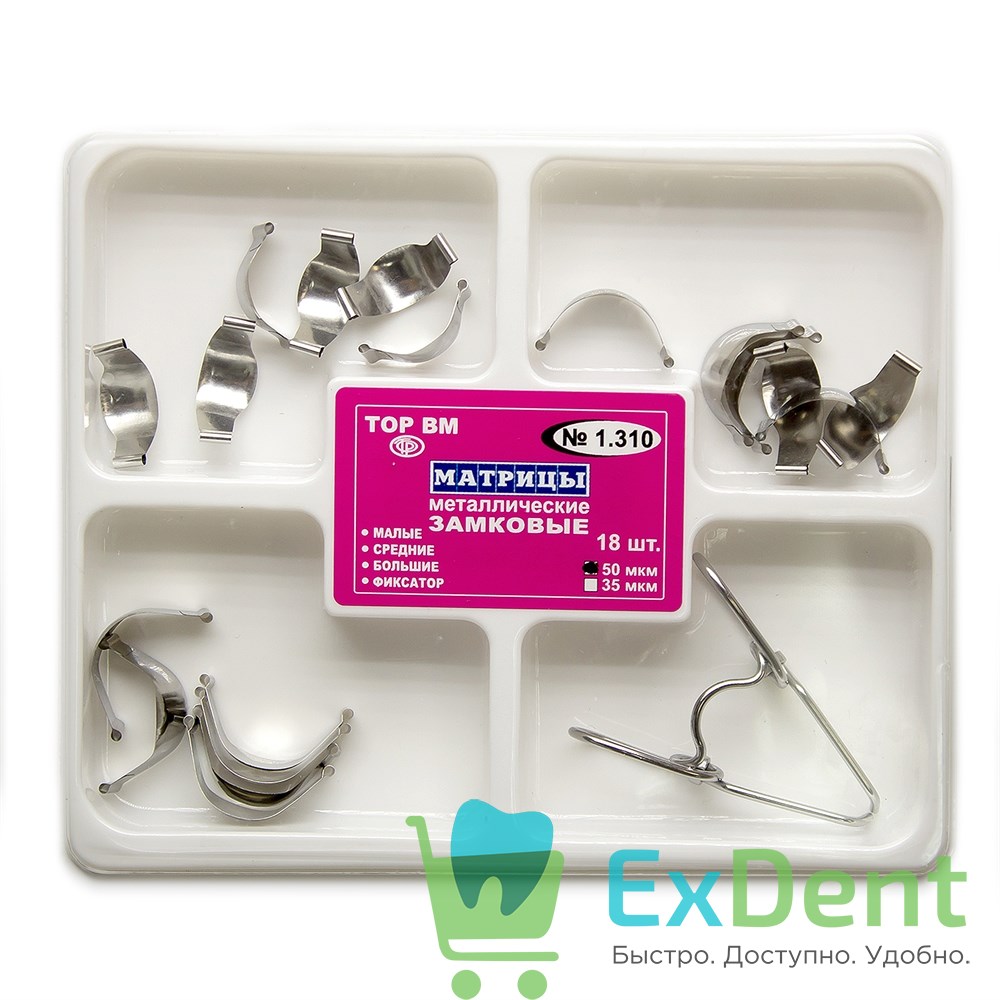 Матрицы металлические контурные замковые, набор 3 вида + фиксатор (50 мкм х 18 шт)