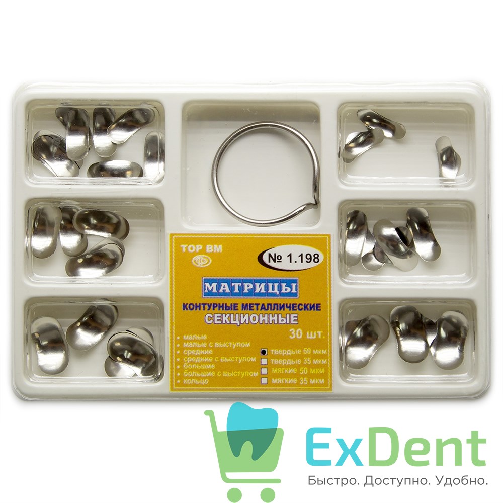 Матрицы металлические секционные, набор 6 видов + кольцо, твердые (50 мкм х 30 шт)