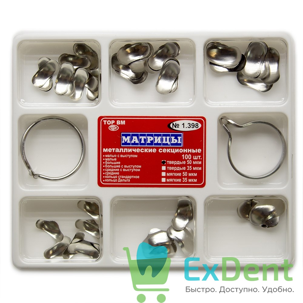 Матрицы металлические секционные, набор 6 видов + 2 кольца, твердые (50 мкм х 100 шт)