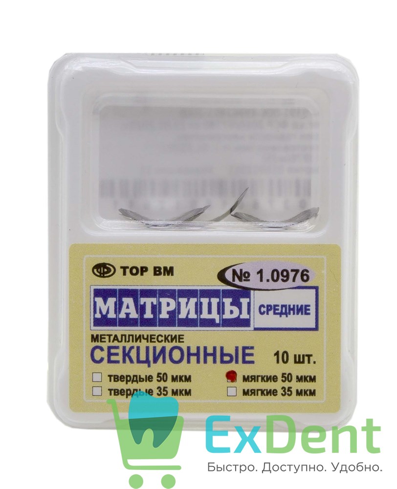 Матрицы металлические секционные, средние, мягкие (50 мкм х 10 шт)