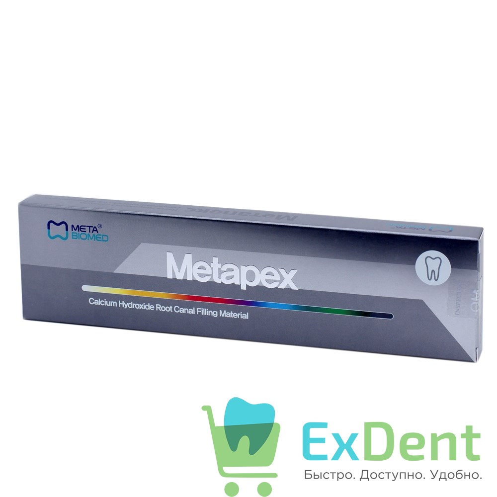 Метапекс — стоматологический препарат, рекомендованный ведущими стоматологами мира, широко используется для обработки открытой пульпы и обеспечения пациенту полной антибактериальной защиты. Материал представляет собой гидроокись кальция с йодоформом, последний оказывает мощное антисептическое воздействие, надежно предохраняя пульпу от воздействия внешней патогенной среды. После введения препарата источник воспаления оказывается в абсолютно стерильной среде в течение двух суток.