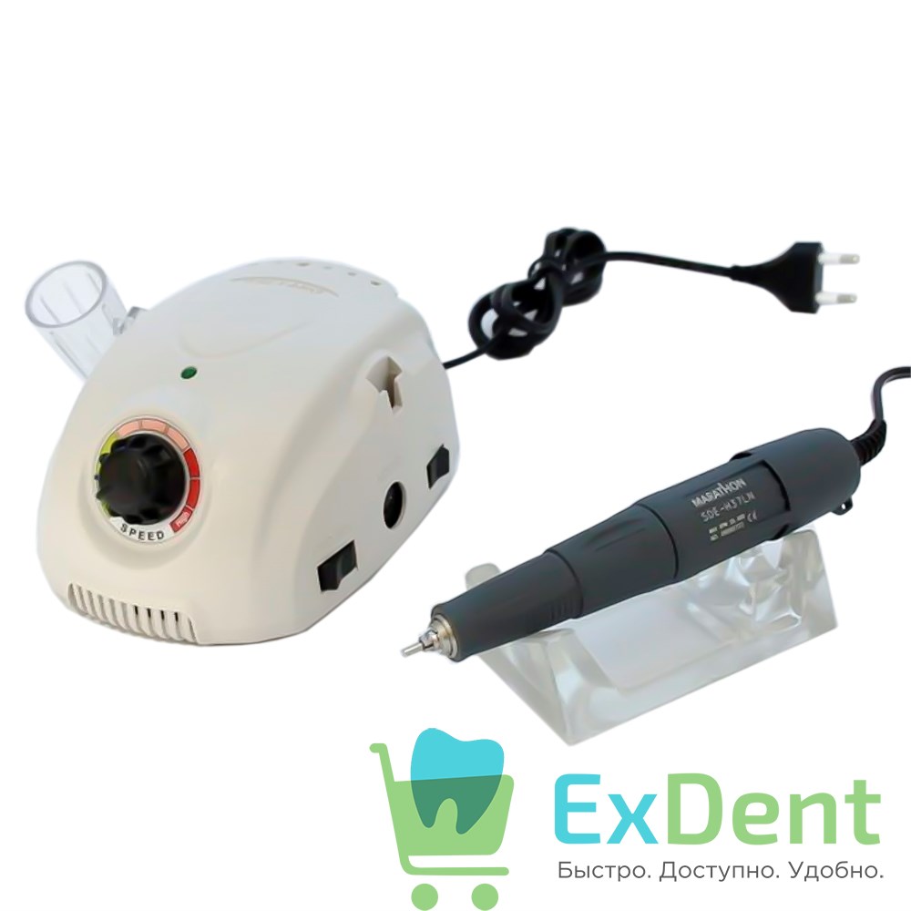 Микромотор в комплекте: блок управления для аппарата шлифовального зуботехнического, марки "Marathon", Marathon - 3 Champion (эл. мощность 40Вт, цвет белый) с пластиковым держателем наконечника (SMT-HSEN) и подставкой, наконечник-микромотор SDE-H37LN (35000 об/мин, вращающий момент 2.9Нсм), педаль SFP-27 включения/выключения и техпаспорт, SMT (Корея)