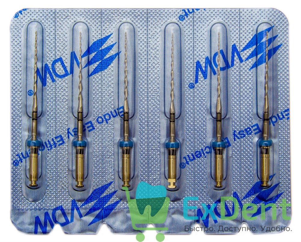 Расстояние между режущими лезвиями увеличивается от кончика инструмента до рукоятки. Более частая резьба у верхушки инструмента ликвидирует инфекцию у апекса, а более редкая резба у основания инструмента формирует канал. Прогрессивное лезвие и пространство для удаления дентина глубже на внутренней поверхности лезвия, что помогает сократить до минимума риск блакировки и накопление дентинных опилок