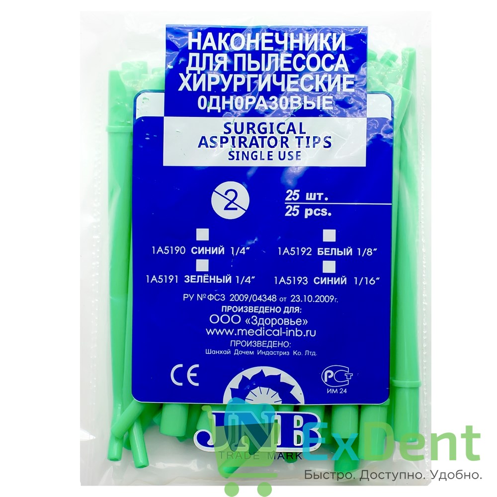 Наконечники для пылесосов 1/4 хирургические одноразовые зеленые (25 шт)