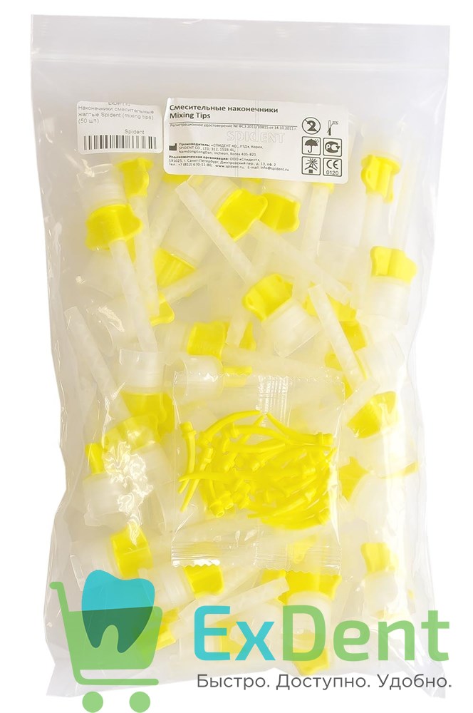 Наконечники смесительные желтые Mixing Tips Yellow Spident (50 шт + 25 шт)