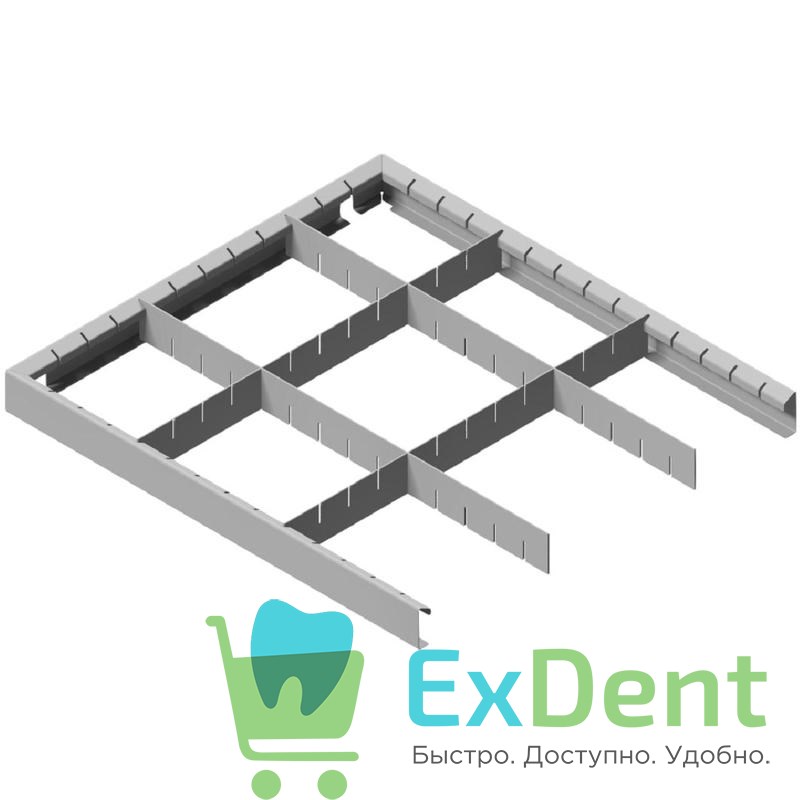 Органайзер позволяет упорядочить хранение содержимого ящиков вашего столика СИПС-М-01. Он является сборно-разборной, встраиваемой металлической конструкцией. Состоит из каркаса, поперечных и продольных планок, позволяющих в любой момент изменить размер секций для удобства хранения материалов, инструментов и приборов различных размеров.
