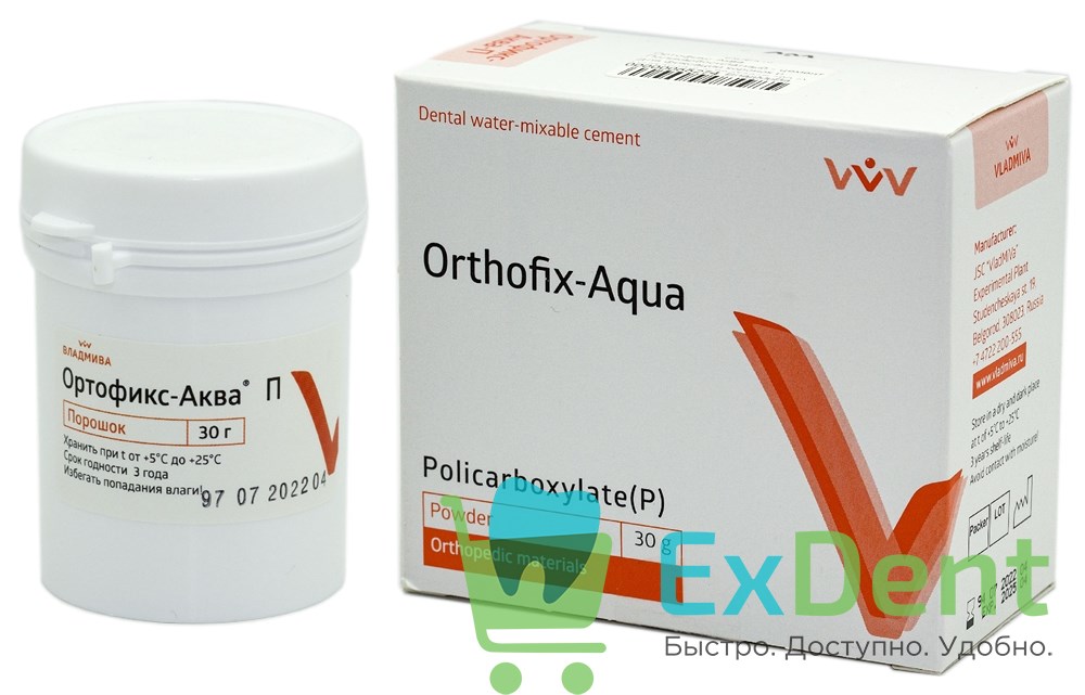 Ортофикс-Аква ПОЛИКАРБОКСИЛАТНЫЙ представляет собой механическую смесь модифицированной окиси цинка и сухой полиакриловой кислоты. «Ортофикс-Аква» поликарбоксилатный обладает хорошей адгезией к дентину, эмали и к основным конструкционным стоматологическим материалам, минимальной растворимостью и усадкой, высокой прочностью. Порошок цемента «Ортофикс-Аква» поликарбоксилатный легко смешивается с водой до получения необходимой консистенции. При фиксации коронок и мостовидных протезов не вызывает болевых ощущений у пациента.