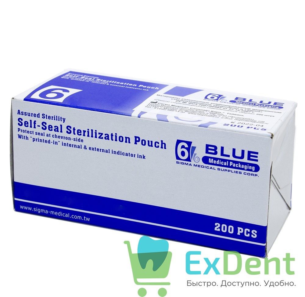 Пакеты для стерилизации - 200 штук - 90 мм х 162 мм (SIGMA) позволяют проводить обработку медицинского инструмента паровым или газовым методом стерилизации.