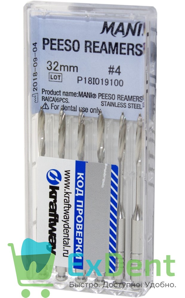 Peeso Reamers №4, 32 мм, Mani, расширитель устьев корневых каналов, машинный (6 шт)