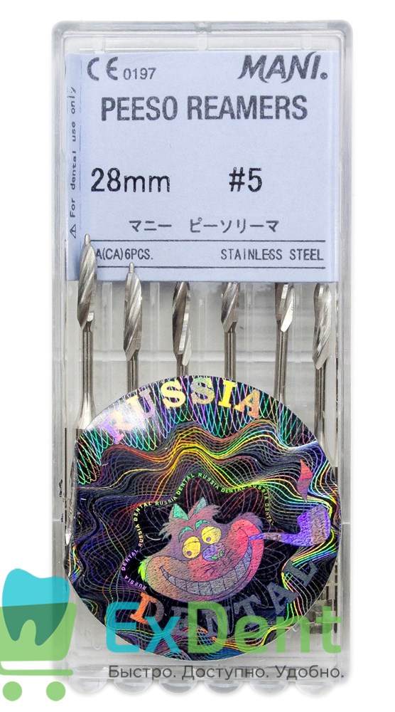 Peeso Reamers №5, 28 мм, Mani, расширитель устьев корневых каналов, машинный (6 шт)