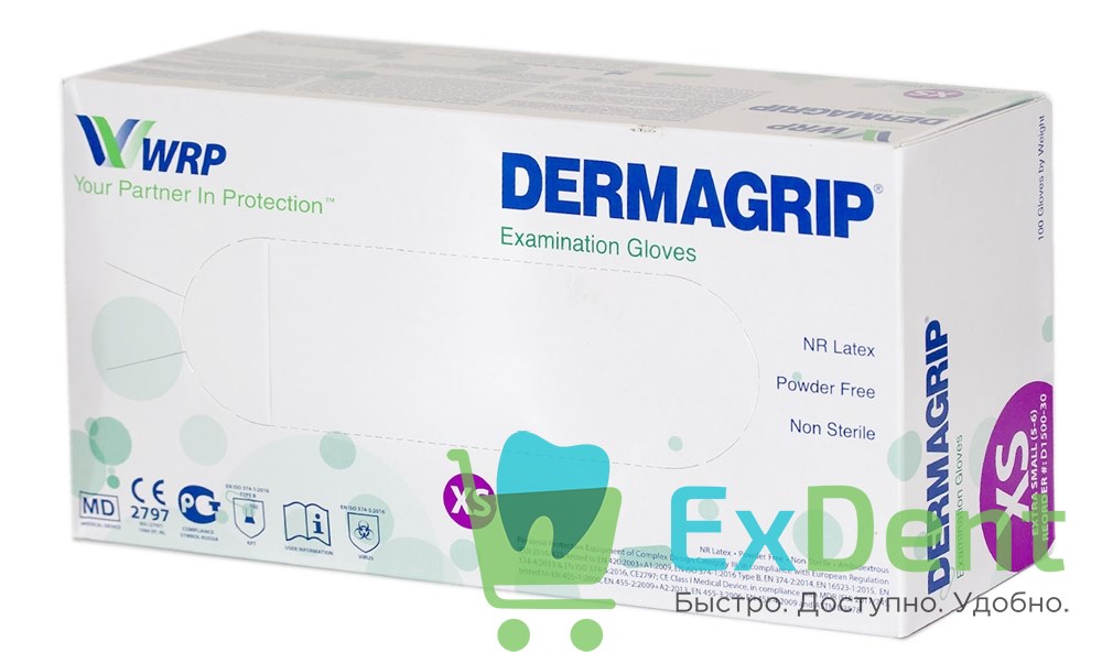 Перчатки Dermagrip XS, латексные, неопудренные, нестерильные, смотровые (100 шт)