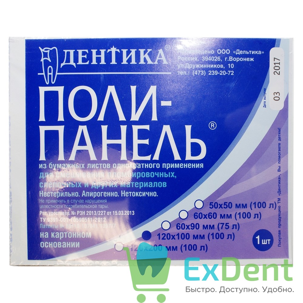 Поли-панель блок из бумажных листов на картонном основании, для замешивания пломбировочных, слепочных и других материалов. Размер 120 х100 мм, упаковка 100 шт.