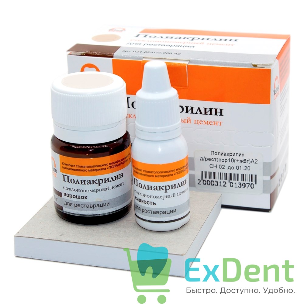 Полиакрилин - стеклоиономерный цемент для реставрации. На основе тонкодисперсного кальций-алюмофторсиликатного стекла, полиакриловой кислоты и винной кислоты.