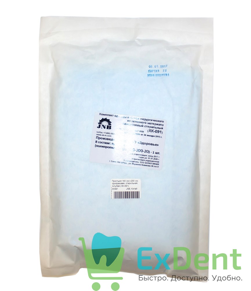 Простыня 140 см х 200 см, одноразовая, стерильная, голубая (ХК-091)