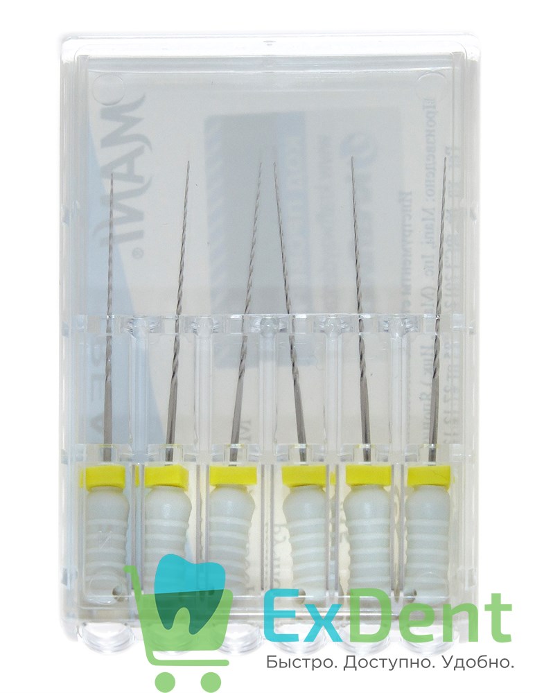Материал: MANI твердоволоконная нержавеющая сталь. Для улучшения характеристик, необходимых для производства высококачественного эндодонтического инструмента в технологию производства нержавеющей стали 18-8 введен специальный запатентованный режим “вытягивания”, что позволяет существенно увеличить гибкость, вязкость, эластичность инструментов.