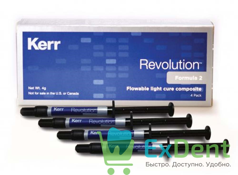Купить Revolution (Революшен) F2 A1 - светоотверждаемый текучий композит (4 х 1 г) произведенный компанией Kerr вы можете в ExDent.ru по цене 3 570руб.