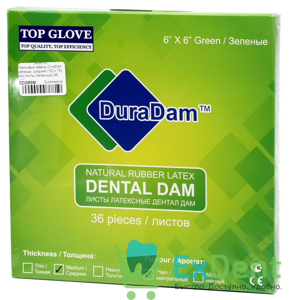 Резиновые завесы DuraDam зеленые, средние (152 х 152 мм) листы латексные (36 шт)