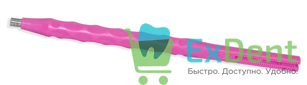 Ручка для зеркала стоматологического, изготовлена из прочного пластика розового цвета в виде эргономичного стержня с множественными углублениями, которые обеспечивают надежный захват инструмента в руке и препятствуют скольжению. Длина 135 мм. Стерилизовать при температуре до 240°C.