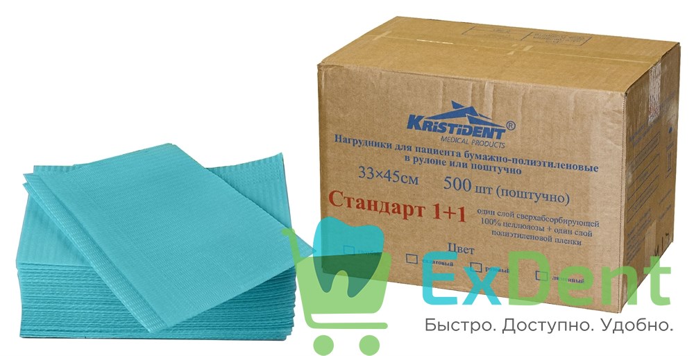 Салфетки для пациентов 2-х слойные голубые, KRISTI СТАНДАРТ 33 х 45 см (500 шт)