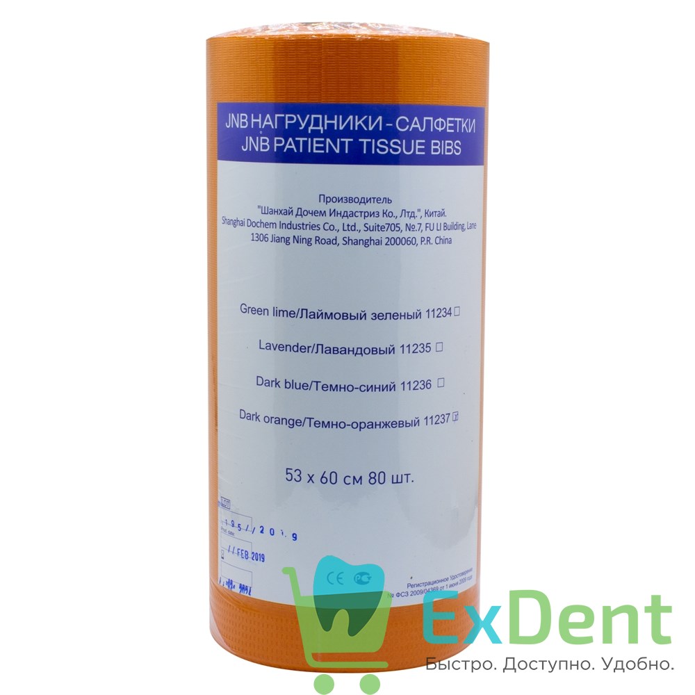 Салфетки (нагрудники) бумажные в рулое, JNB оранжевые 60 х 53 см, (80 шт)