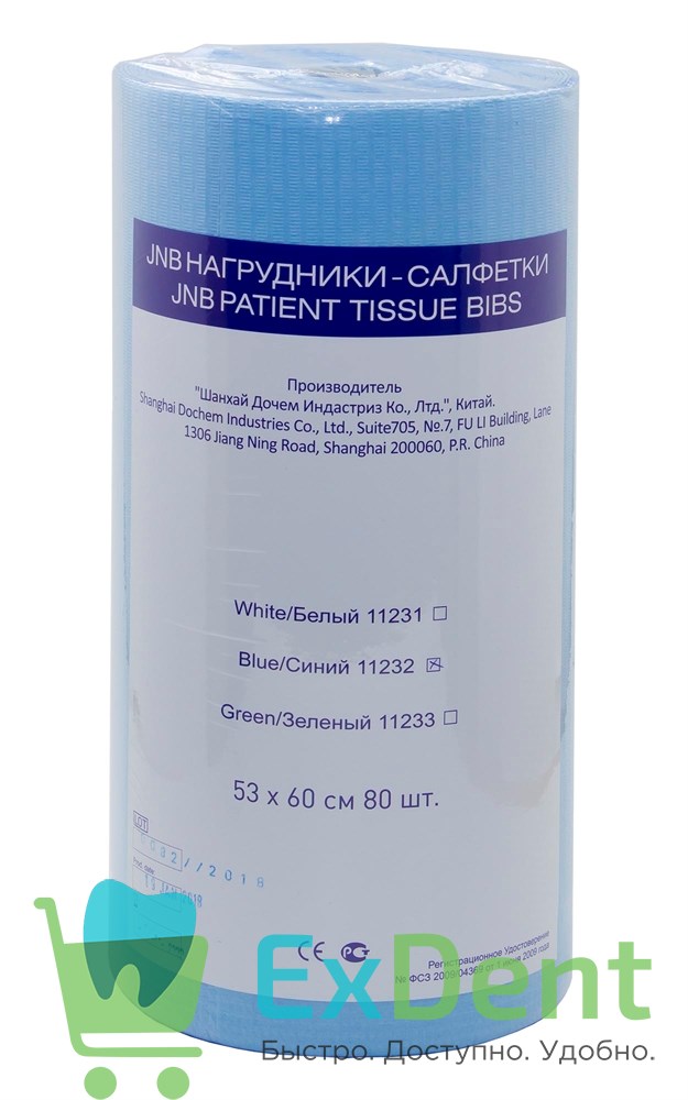 Салфетки (нагрудники) бумажные в рулое, JNB синие 60 х 53 см, (80 шт)