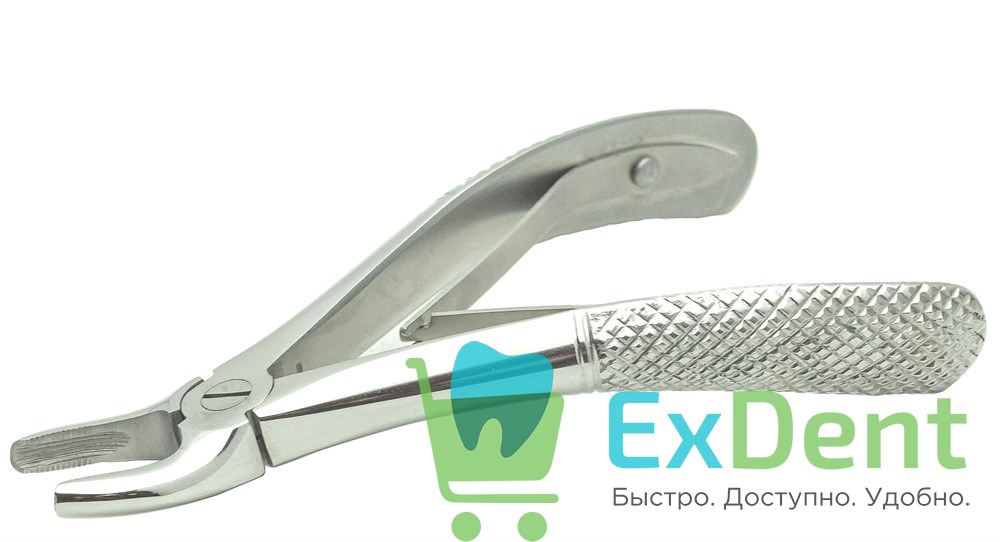 Данные щипцы удобно применять на боковых участках зубного ряда верхней челюсти у детей со сменным прикусом, так как часть браншей до шарнирного соединения укорочена.