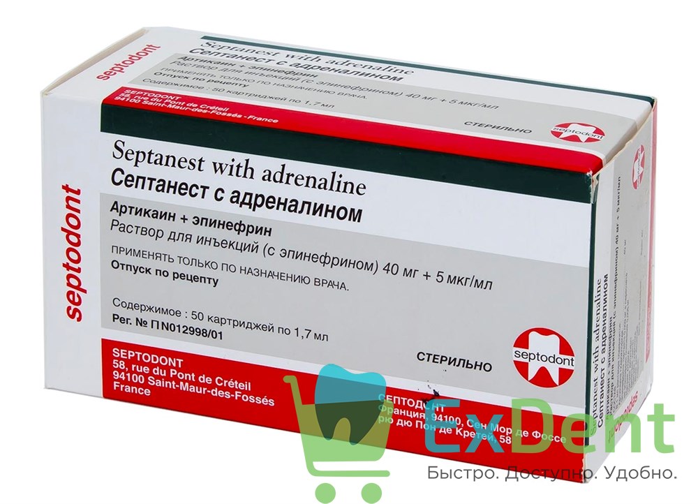 Септанест с адреналином (Septanest with Adrenaline) используется при проведении проводниковой и инфильтрационной анестезии в стоматологии. В полной мере отвечает стандартам качества ВОЗ.