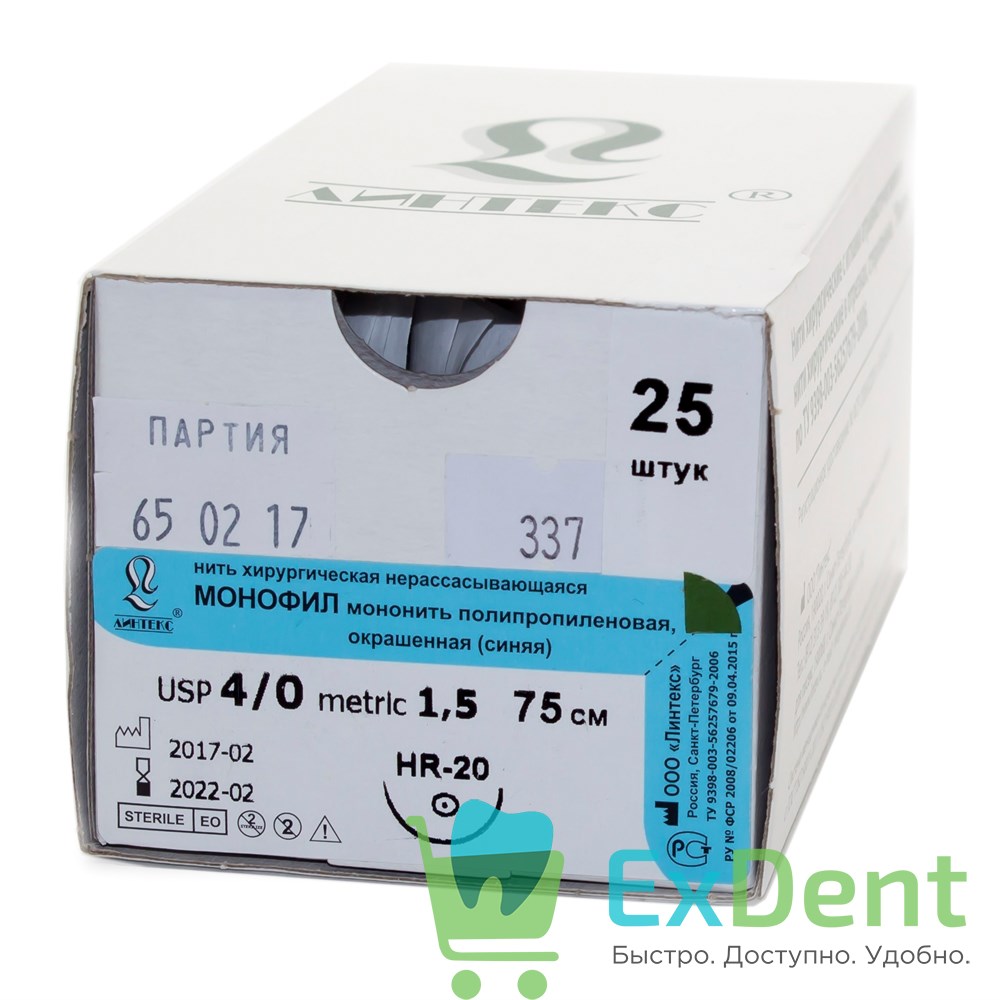Шовный материал Монофил USP 4/0, metric 1.5, HR-20 колющая, 75 см - нити хирургические с иглами