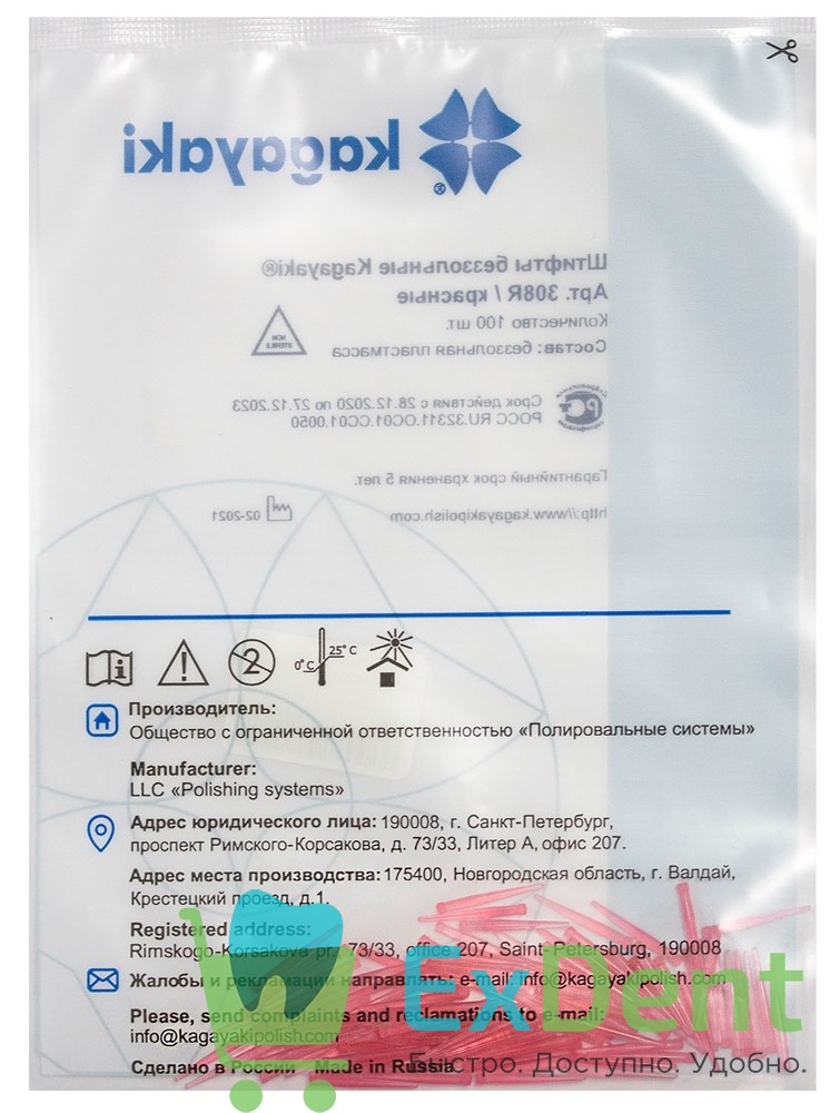 Штифты беззольные №308 красные (100 шт) Kagayaki
