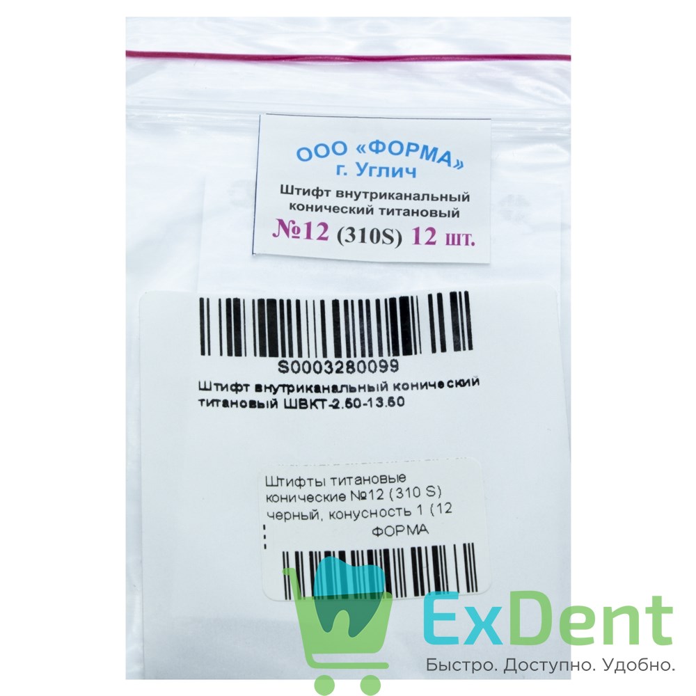Штифты титановые конические №12 (310 S) черный, конусность 1 (12 шт)