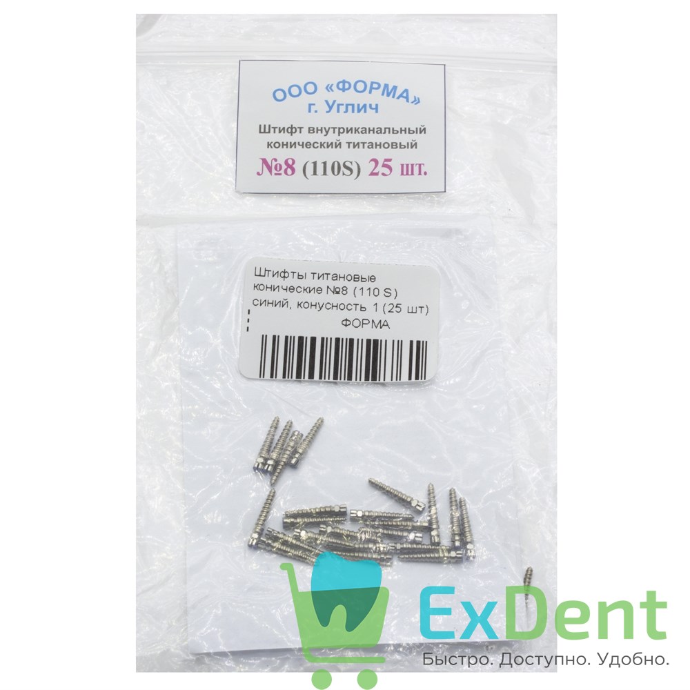 Штифты титановые конические №8 (110 S) синий, конусность 1 (25 шт)
