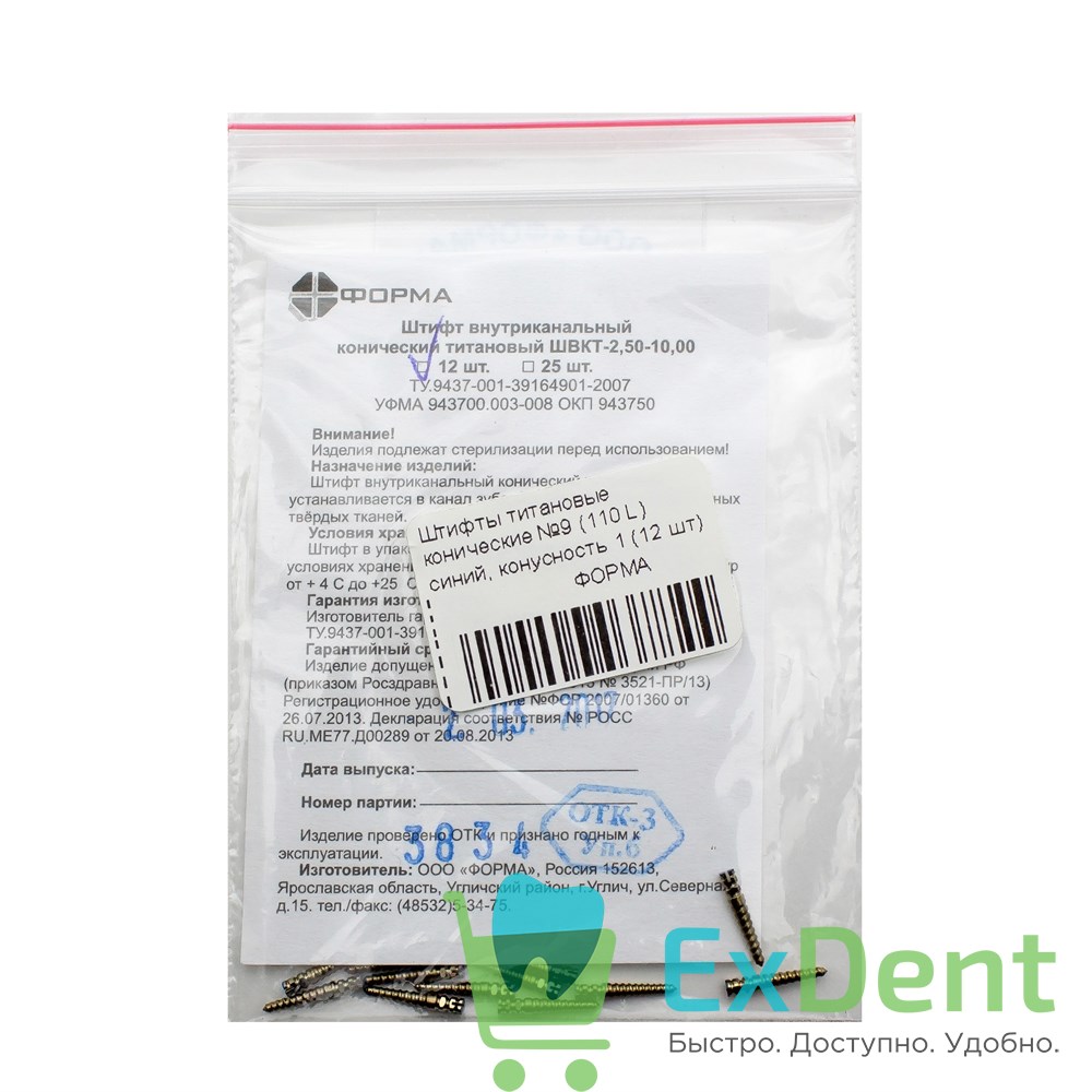 Штифты титановые конические №9 (110 L) синий, конусность 1 (12 шт)