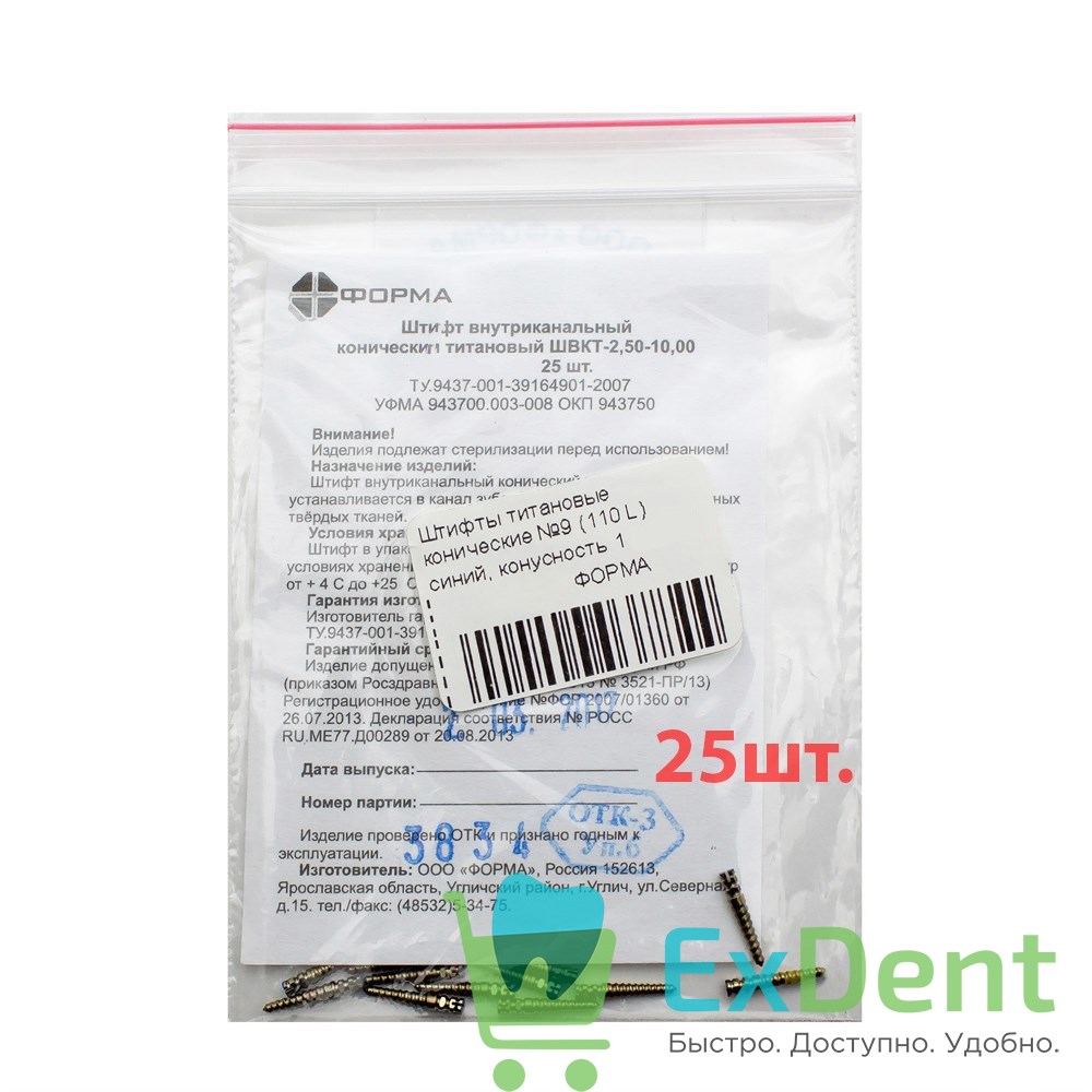 Штифты титановые конические №9 (110 L) синий, конусность 1 (25 шт)