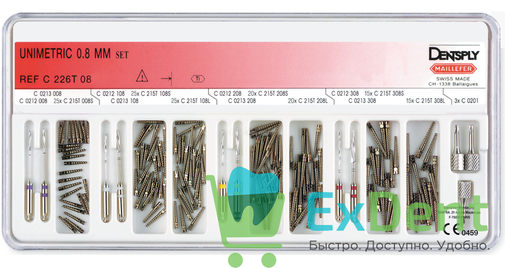 Штифты титановые конические Unimetric набор 0,8 мм (145 штифтов, 8 дрилей, 3 ключа)