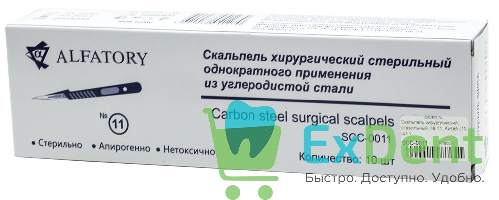 Скальпель хирургический, стерильный, № 11, Китай (10 шт.)