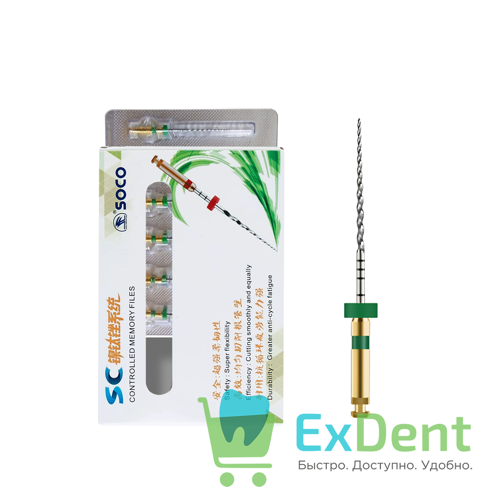 Файлы SC из никель-титанового сплава для ротационного эндонаконечника являются оригинальной разработкой компании SOCO. Они отличаются способностью запоминать форму, наличием режущей боковой грани и треугольным сечением.