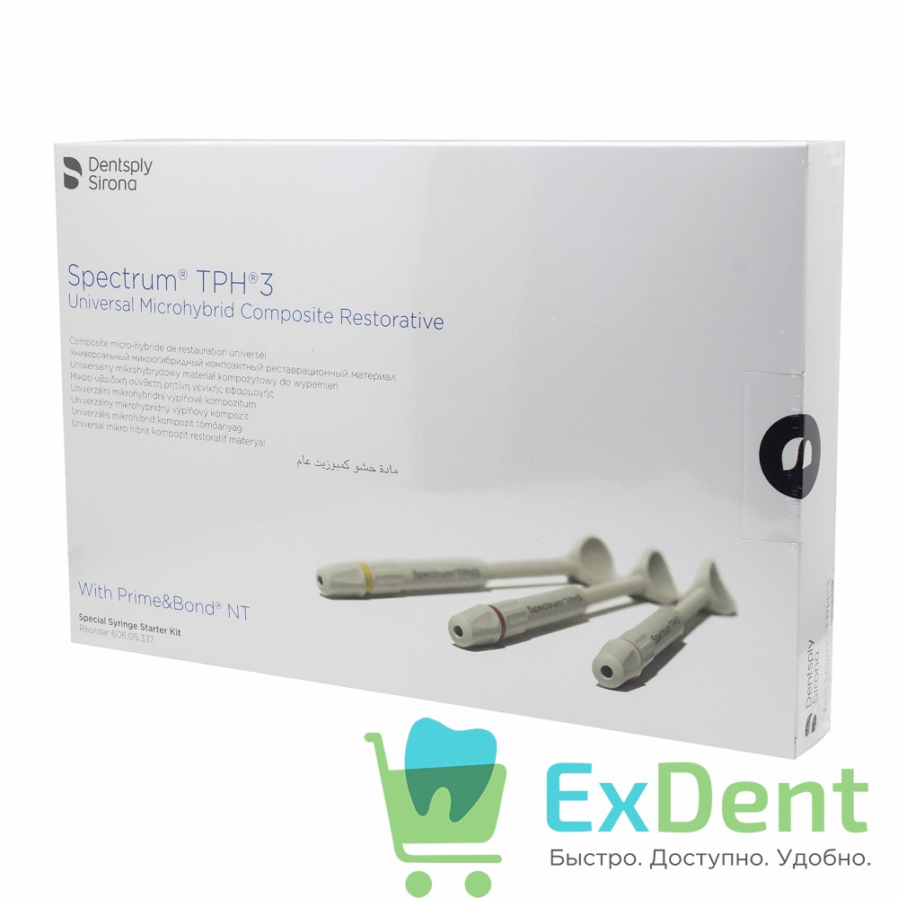 Spectrum TPH 3 (Спектрум ТРН 3 шприцы) - рентгеноконтрастный композиционный материал световой полимеризации с субмикронным размером частиц для изготовления реставраций передних, боковых групп зубов. Производство компании Dentsply.