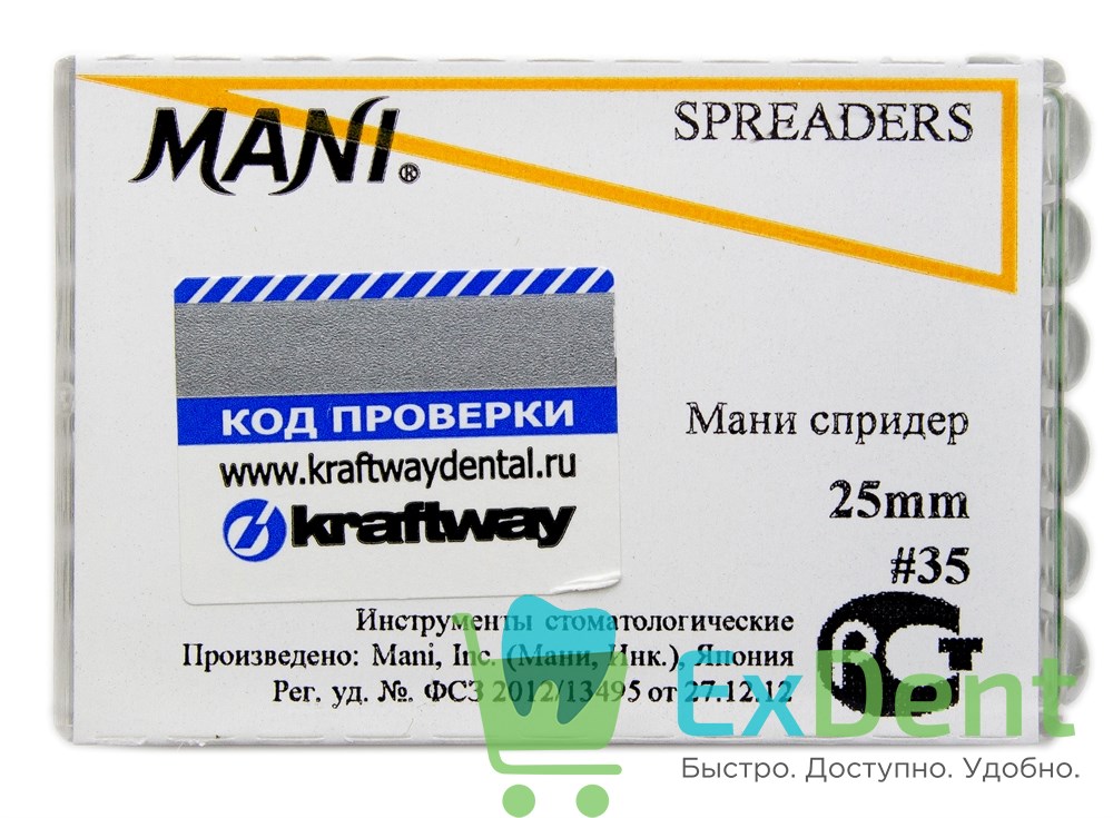 Spreaders (Спредер) №35, 25 мм, Mani, для латеральной конденсации гуттаперчи, ручные (6 шт)