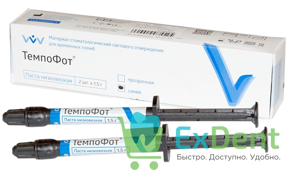 ТемпоФот синий - светоотверждаемый материал для временного пломбирования (2 х 1,5)