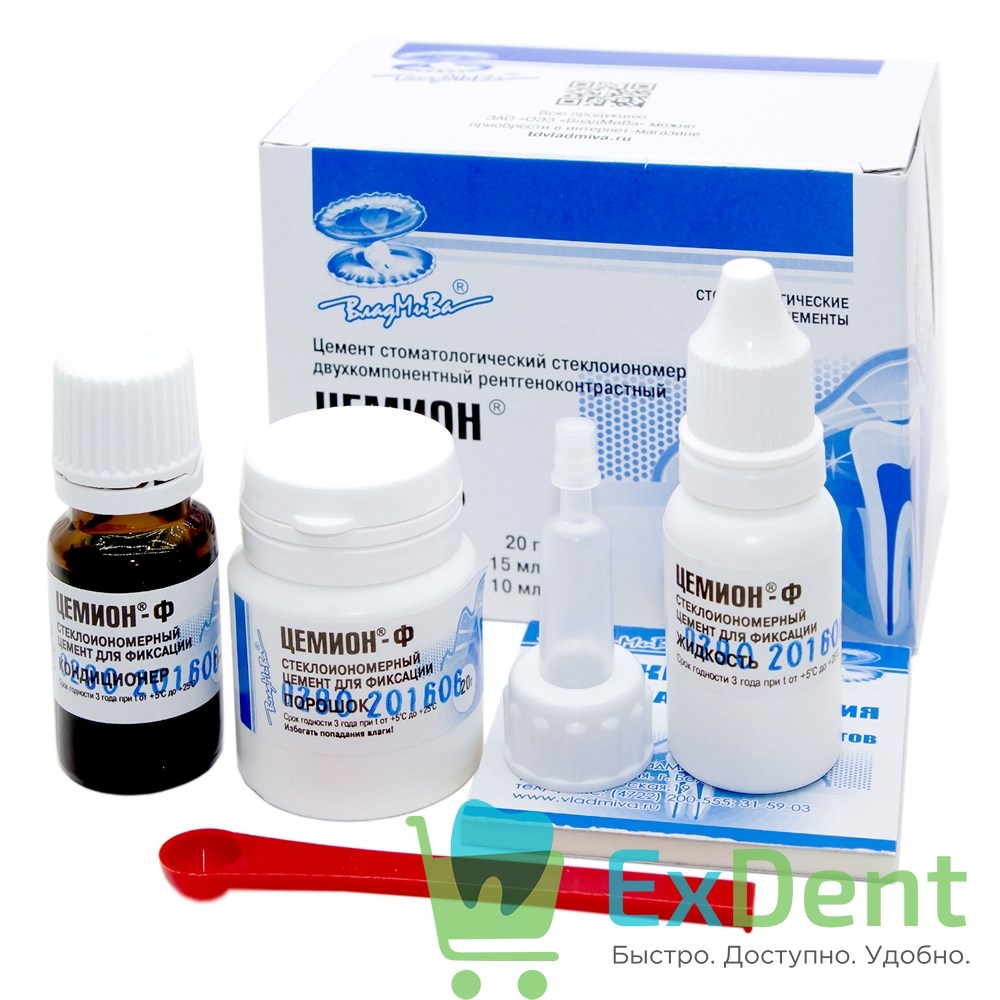 Цемион Ф - стеклоиономерный цемент химического отверждения для фиксации (20 г + 15 мл + 10 мл)