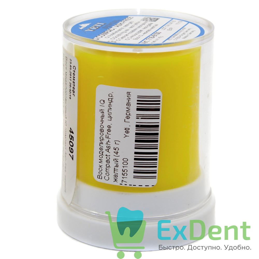 Воск моделировочный IQ Compact Ash-Free, цилиндр, желтый (45 г)