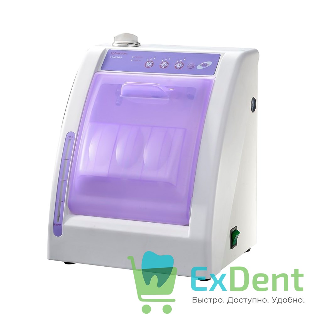 Устройство для предстерилизационной смазки наконечников (LUB 909) производит очистку и смазку 3-x инструментов (два турбинных высокоскоростных наконечника и один низкоскоростной инструмент: мотор, прямой или угловой наконечник) перед их стерилизацией в автоклаве. Отличительной особенностью является упрощенное наполнение емкости маслом, индикатор количества масла находится в резервуаре. Передняя панель для удобной очистки – съемная.