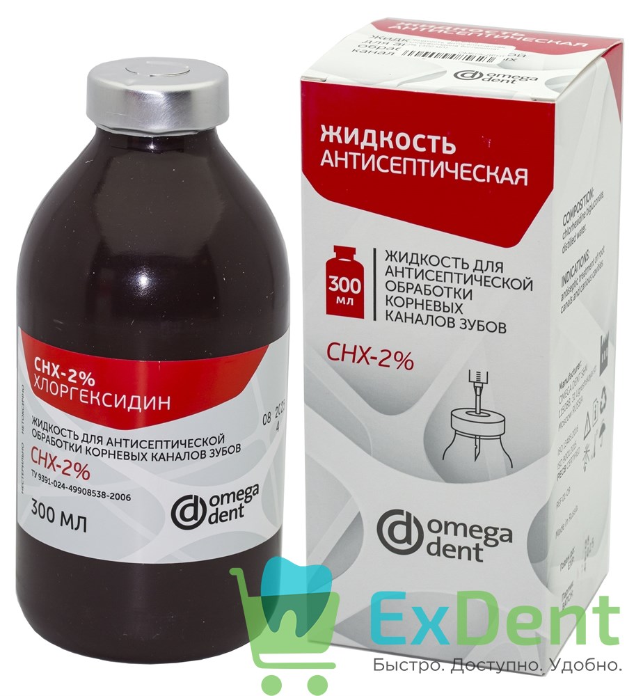 Жидкость для антисептической обработки корневых каналов и кариозных полостей, раствор 2% хлоргексидина.